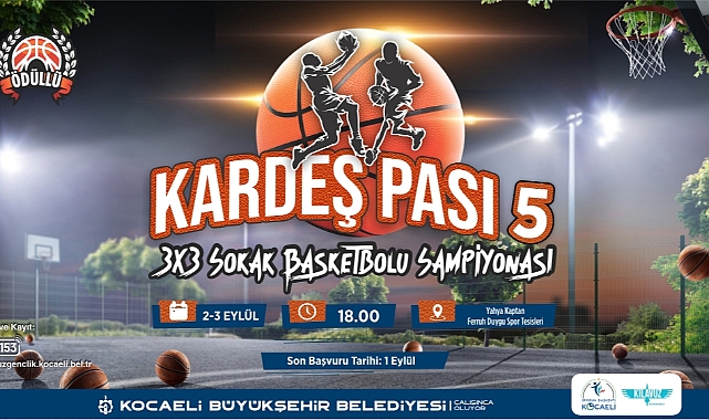 “Sporun Başkenti Kocaeli” vizyonuna uygun olarak yerel, ulusal ve uluslararası organizasyonlar gerçekleştiren Kocaeli Büyükşehir Belediyesi, bu yıl beşincisini düzenlediği Kardeş Pası Sokak Basketbol Şampiyonası’nda basketbol severleri bir araya getirecek. Turnuvaya başvurular 1 Eylül Cuma günü (bugün) mesai bitimine kadar Kocaeli Büyükşehir Belediyesi https://kilavuzgenclik.