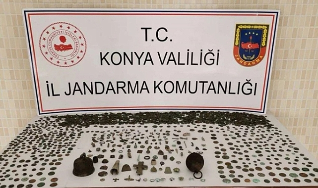 Konya'da düzenlenen operasyonda, tarihi eser olduğu değerlendirilen sikke ve objeler ele geçirildi, 3 şüpheli gözaltına alındı.