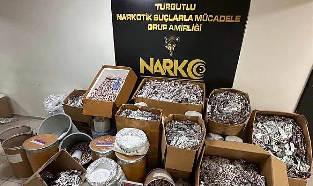 Manisa İl Emniyet Müdürlüğü Narkotik Suçlarla Mücadele Şube Müdürlüğü ve Turgutlu İlçe Emniyet Müdürlüğü ekipleri tarafından, tavuk çiftliğiyle birlikte 9 ikamette yapılan aramada 358 bin 858 sentetik ecza hap, 122 kilogram toz halinde uyuşturucu madde ile 2 hassas terazi ele geçirildi.Operasyonda H.E. (34), M.S. (34), K.B. (27) ve K.D. (54) gözaltına alındı. (İLKHA)