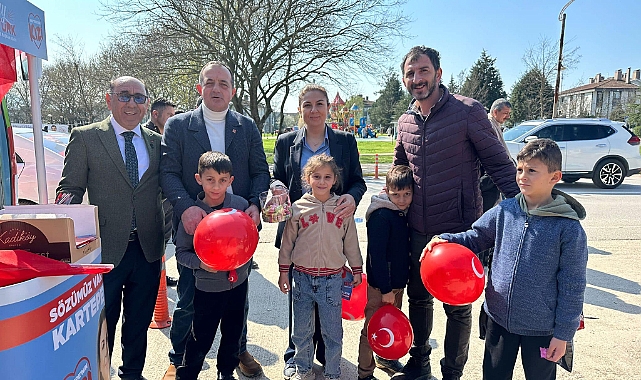 unutmayan CHP'liler miniklere balon ve Türk Bayrağı hediye ettiler.