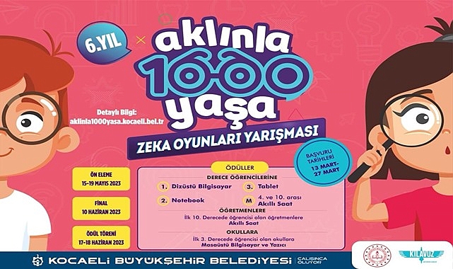 Kocaeli Büyükşehir Belediyesi çocukların düşünen, üreten ve karşılaştıkları problem karşısında çözümler bulabilen bireyler olarak yetişmesi için pek çok eğitim faaliyeti gerçekleştiriyor. Bireysel ve grup oyunları ile öğrencilerin yeteneklerinin geliştirilmesi, sosyal gelişimlerinin desteklenmesi, öğrencilere kendilerini ifade edebilme fırsatının sunulması, öğrenciler arasındaki iletişim ve dostluk duygularının geliştirilmesi sağlanacak. Akıl ve zekâ oyunları ile vakitlerini daha verimli geçirmelerinin sağlanması amacıyla bu yıl da ilkokul dördüncü sınıf öğrencilerinin buluştuğu “Aklınla 1000 Yaşa” zekâ oyunları yarışmasını 6. kez düzenliyor.
