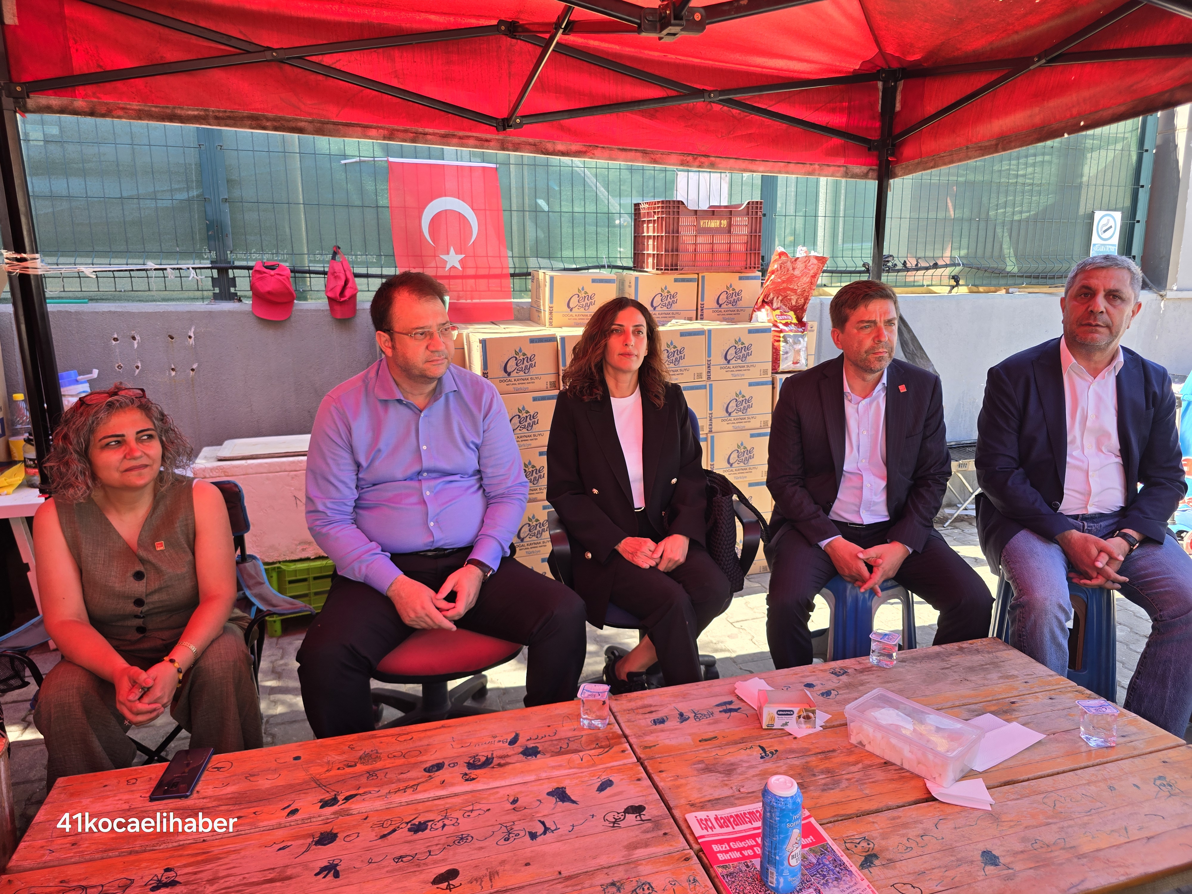CHP heyeti, işçilere destek mesajı vererek, anayasal sendika hakkı için verilen bu mücadelenin sonuna kadar takipçisi olacaklarını belirtti.