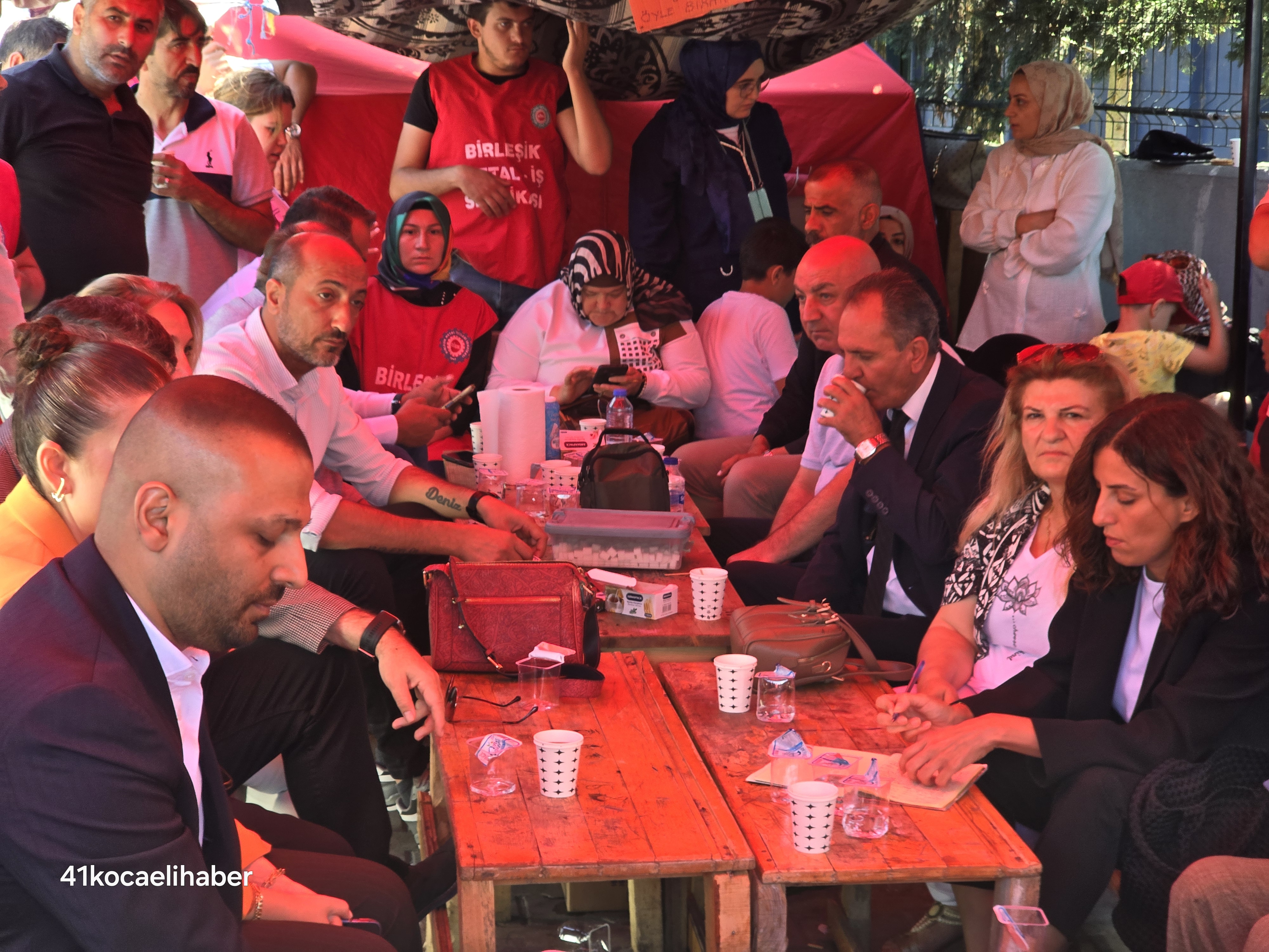 “Demokrasi ve Haklar İçin Omuz Omuza”Birleşik Metal-İş Sendikası Genel Başkanı Özkan Atar, CHP heyetine teşekkür ederek: “İşçilerin ekmeği ve onuru için verdiği bu mücadele sadece sendikal bir hak arayışı değil, aynı zamanda demokrasi mücadelesidir. Omuz omuza dayanışma, hakkımızı kazanmanın en güçlü yoludur.” dedi.