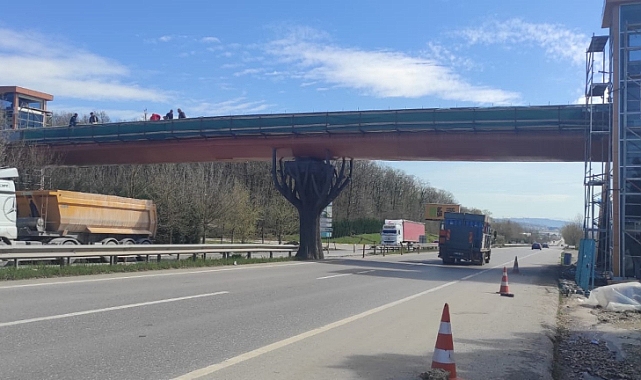 Kocaeli'nin Kartepe ilçesinde bulunan doğal yaşam parkı Ormanya’ya yaya ulaşımını sağlayacak üstgeçidin çelik tabliye üzeri, ahşap kaplama ve ağaç desenli yüzey kaplama işleri yapılıyor. Asansör kuleleri, cephe cam montaj işleri yapılan üstgeçidin merdiven çiçeklik saksılıkları küpeşte imalatı çalışmaları sürdürülüyor. Kocaeli Büyükşehir Belediyesi Fen İşleri Daire Başkanlığı tarafından yapılan 45 metre uzunluktaki 4 metre genişlikte yaya üstgeçidi, D-100 üzerinden Ormanya’ya yaya ulaşımını sağlayacak. Üstgeçidin kolonları beton, ana kirişi çelik konstrüksiyon üzeri ise betonarme döşeme olacak. Görsel zenginlik açısından köprünün üzerine koyulacak saksılara çiçek ekilecek, üst geçit kolonları ağaç gövdesi giydirme şeklinde yapılacak.