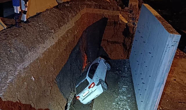 Otomobil 4 metrelik çukura düştü: 3 yaralı