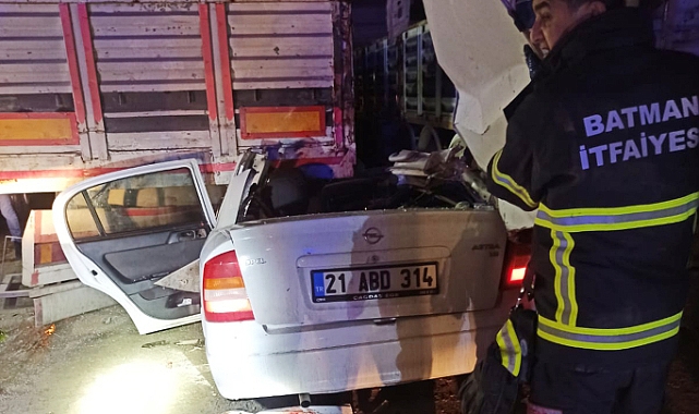 Kaza, Batman-Siirt Çevreyolunda meydana geldi.Edinilen bilgiye göre, seyir halindeki 21 ABD 314 plakalı otomobil, sürücüsünün direksiyon hakimiyetini kaybetmesi sonucu park halindeki 06 DJ 2523 plakalı tırın altına girdi.Feci kazada isimleri öğrenilemeyen sürücü ve yanında oturan kadın ağır yaralandı.Yaralılar, itfaiye ekiplerinin uzun uğraşları sonucu sıkıştıkları yerden çıkartılarak sağlık ekipleri aracılığıyla hastaneye kaldırıldı. (İLKHA)