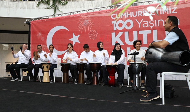 Kocaeli Büyükşehir Belediyesine bağlı Cemil Meriç Engelsiz Yaşam Merkezinde eğitim gören özel bireyler Cumhuriyetimizin 100. yıl kutlamalarına ortak oldu. AVM’de üç gün boyunca gerçekleşen etkinlikte, özel bireylerin sene boyunca üstüne çalıştıkları el sanatları sergisi, ayrıca müzik atölyesinde hazırlanan ritm grubu da sahne aldı.