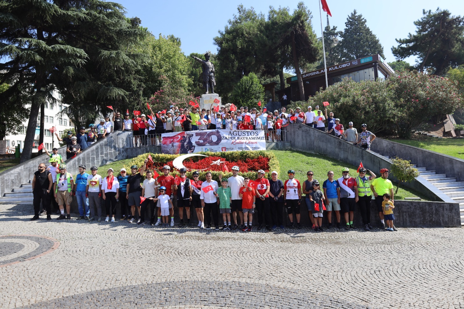 İzmit Belediyesi’nin 30 Ağustos Zafer Bayramı etkinlikleri kapsamında düzenlediği Bisiklet Korteji, kent sakinlerinin yoğun ilgisiyle gerçekleştirildi. İzmit Belediyesi Spor İşleri Müdürlüğü tarafından organize edilen kortej, Yahya Kaptan Eğitim Merkezi’nden başlayarak Kültür Tepesi’nde bulunan Atatürk Anıtı’nda son buldu. ATA’YA SAYGIKortejin bitiş noktasında toplanan sporcular, Atatürk Anıtı önünde saygı duruşunda bulundu ve İstiklal Marşı’nı hep bir ağızdan seslendirdi. İzmit Belediyesi yetkilileri de etkinliğe katılan sporculara teşekkür ederek milli bayramların taşıdığı değerin altını çizdi.