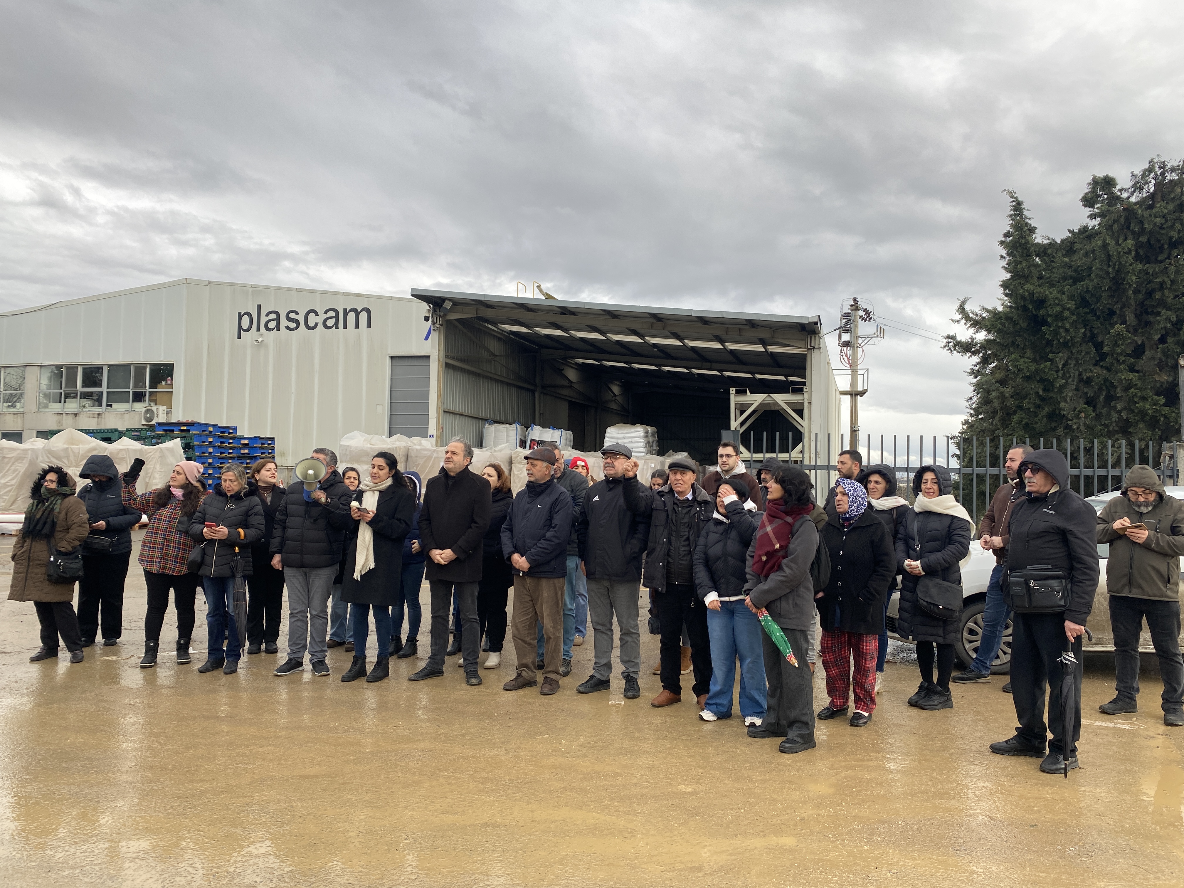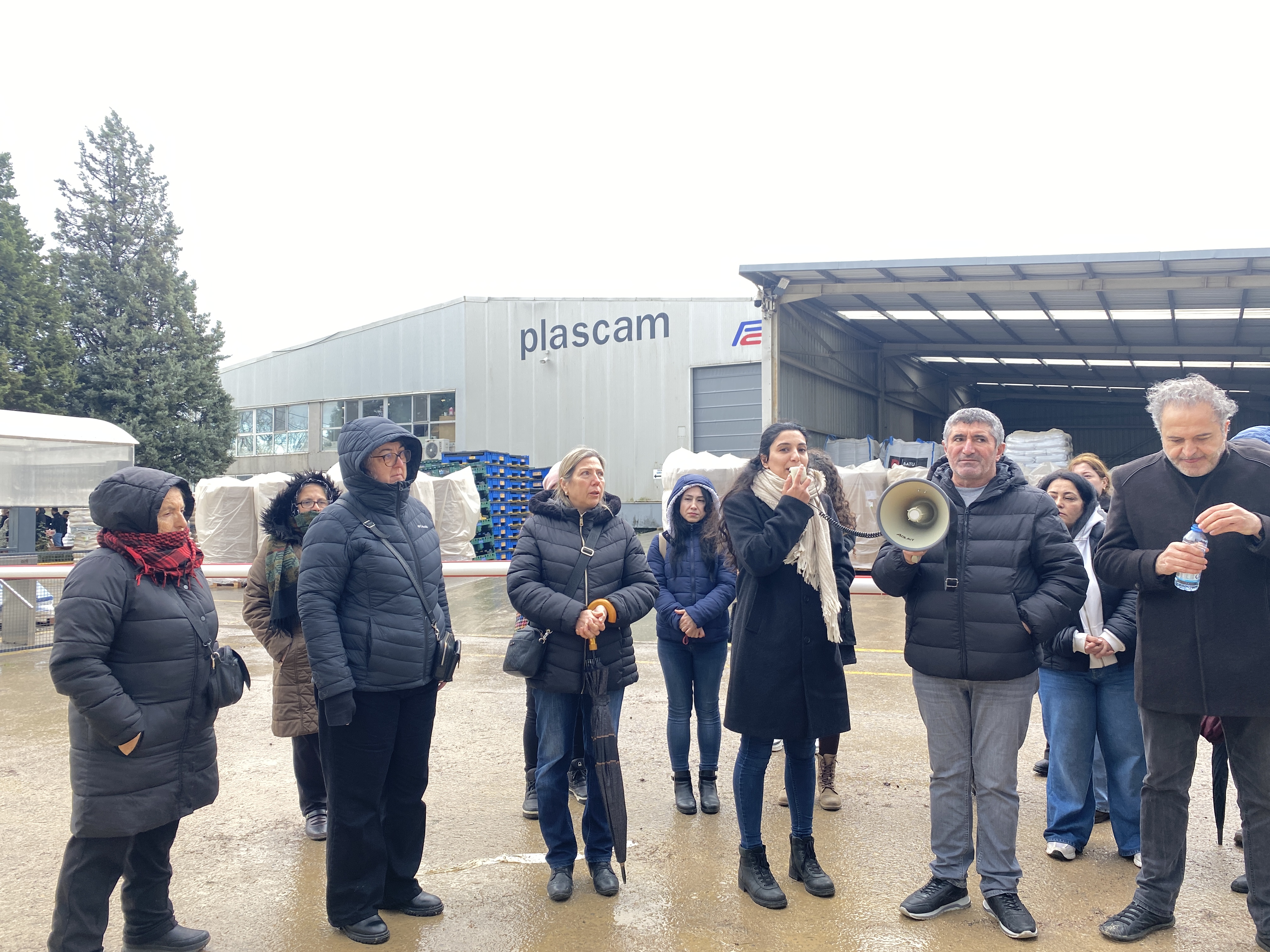 Fabrika önünde konuşan Hasret Kanat, Plascam’da yüzlerce işçinin işten atıldığını, bu işten çıkarmalarda kadın işçilerin kayda değer bir yer tuttuğunu belirterek, “Her krizde olduğu gibi yine ilk gözden çıkarılanlar kadın işçiler oldu” dedi. Bunun nedeninin kadın emeğinin hâlâ ikincil görülmesi olduğunu vurgulayan Kanat, kadınların çalışmasının “ev ekonomisine katkı” olarak tanımlandığını, bu nedenle de iş güvencesinin patronların iki dudağı arasına sıkıştırıldığını ifade etti.