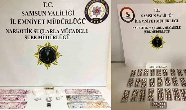 Samsun Emniyet Müdürlüğü Narkotik Suçlarla Mücadele Şube Müdürlüğü ekipleri, ilçe emniyet müdürlükleri ve şube müdürlüklerinin de desteğiyle yapılan uyuşturucu operasyonunda, 219,80 gram metamfetamin, 190 sentetik ecza, 32 adet extacy, 0,72 gram skunk, 4 gram esrar tohumu, 1 adet hassas terazi, 2 adet uyuşturucu madde kullanım aparatı ve uyuşturucu madde satışından elde edildiği değerlendirilen 7 bin 040 TL para ele geçirildi.Operasyonda, 25 kişi gözaltına alındı. (İLKHA)