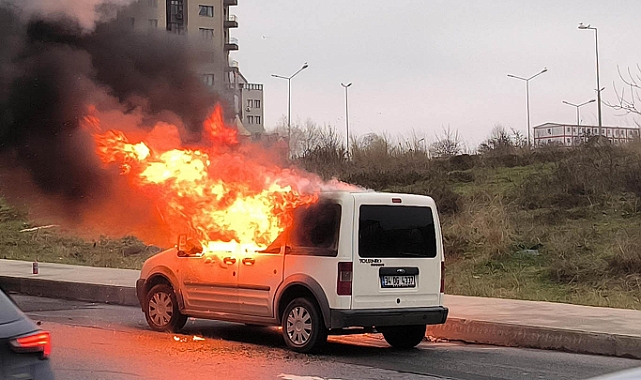 İstanbul Başakşehir'de seyir halindeki hafif ticari araçta yangın çıktı.