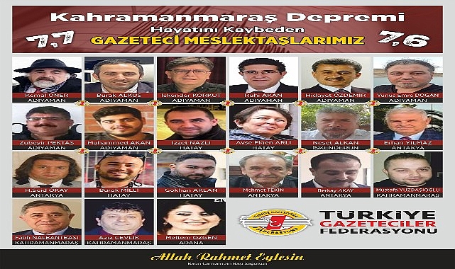 TGF’nin deprem bölgesindeki cemiyet başkanlarından aldığı bilgilere göre enkaz altında kalarak hayatını kaybeden gazetecilerin isimleri şöyle;