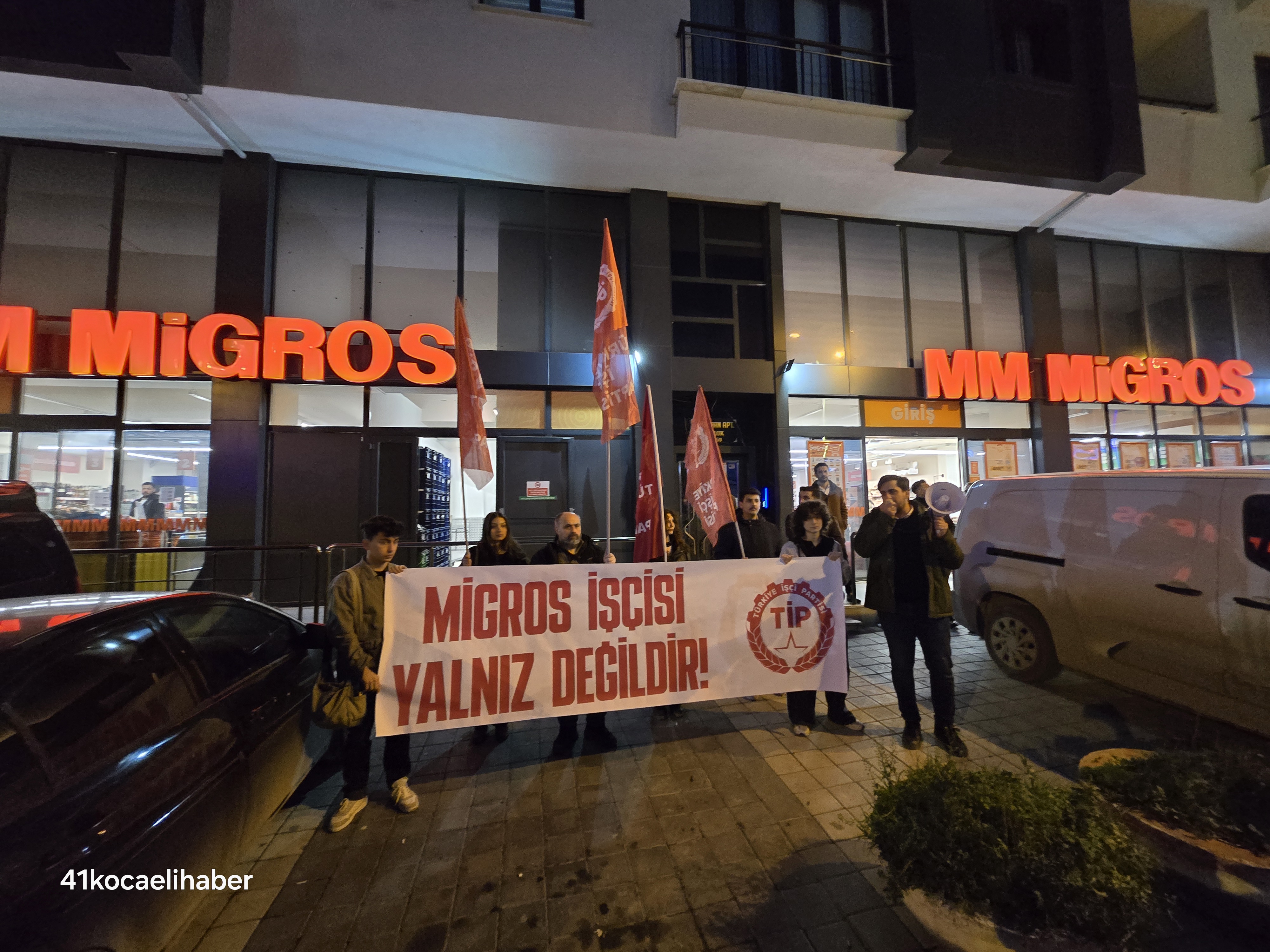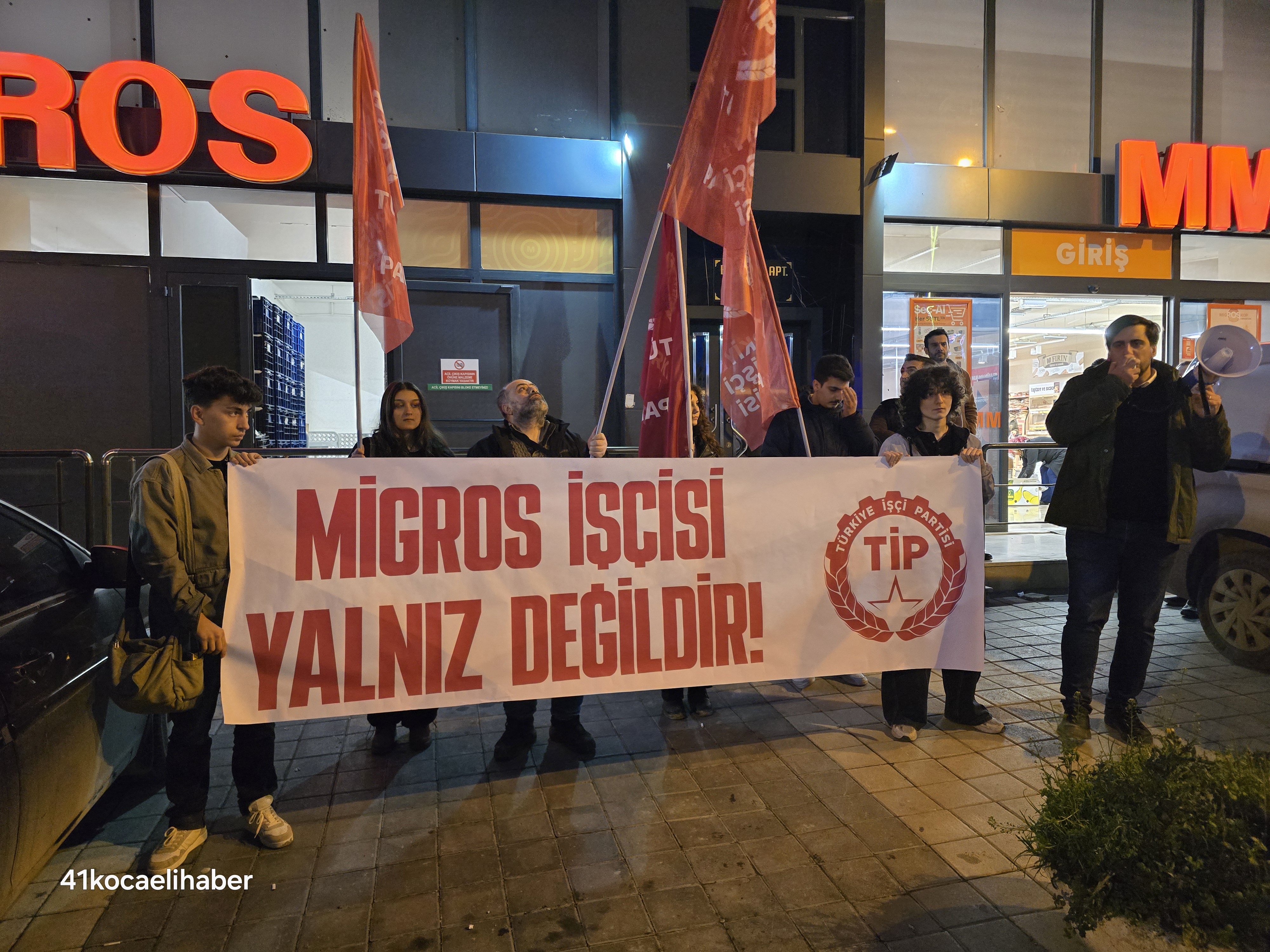 Gebze’deki destek açıklamasına katılan Türkiye İşçi Partisi Kocaeli İl Başkanı Umutcan Tarcan yaptığı açıklamada, ''Bugün burada, Migros mağazalarının önünde bir araya gelmemizin nedeni çok açıktır. Bu ülkede emekçiler artan hayat pahalılığı karşısında her geçen gün daha fazla yoksullaşırken, Migros işçileri de düşük ücret dayatmasına, güvencesiz çalışmaya ve baskılara karşı haklarını savundukları için cezalandırılıyor. Depolarda, mağazalarda, lojistik hatlarında çalışan işçiler; seslerini yükselttikleri için baskılarla susturulmak, yalnız bırakılmak isteniyor.