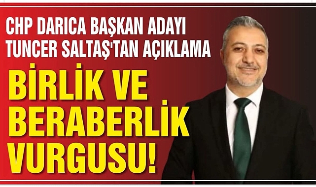 Cumhuriyet Halk Partisi Darıca İlçe Başkan Adayı olarak ismi geçen Tuncer Saltaş, yaptığı açıklamada birlik ve dayanışma vurgusu yaptı