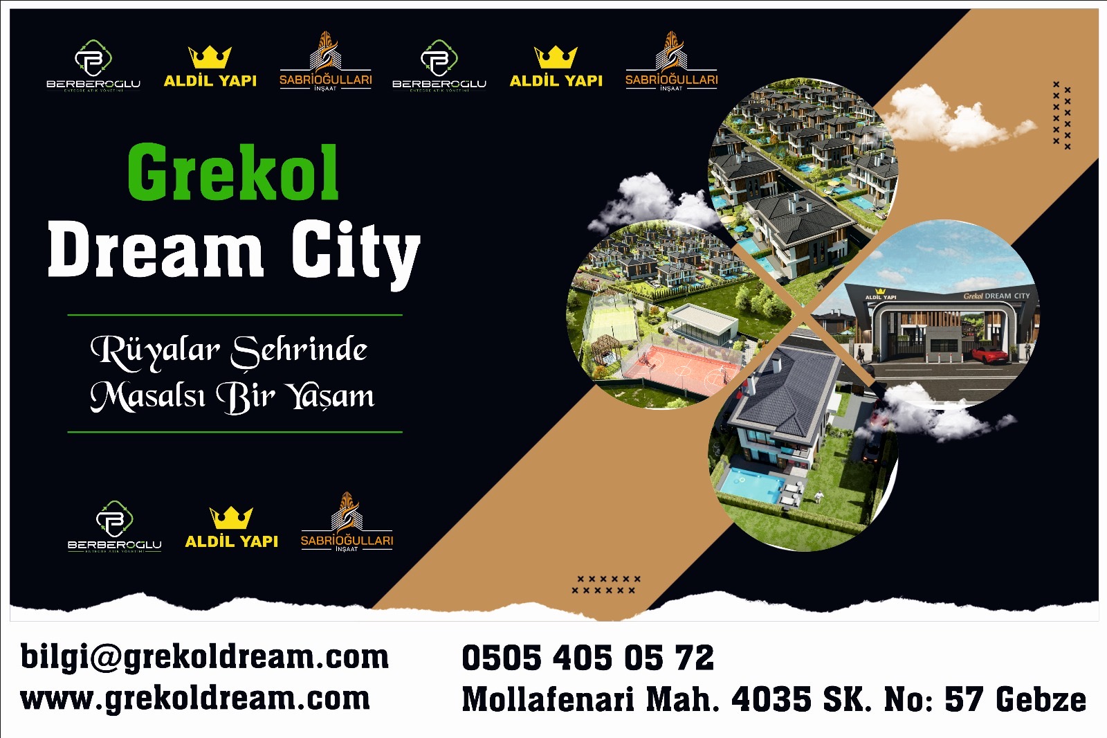 Dubleks villalar, her villaya özel ısıtmalı havuz, iki araçlık otopark, elektrikli araç şarj istasyonu, taşyünü, betopan dış cephe, her villaya müstakil bahçe, güneş enerji sistemi, yerden ısıtma, dev su deposu, özel güvenlikli site girişi, güvenli sokak ve caddeleri, sosyal donatı alanları, spor tesisleri ile rüya gibi bir kentte masalsı bir yaşam için sizi Grekol Dream City’ye davet ediyoruz diyen İzzet Yıldırım, açıklamalarının sonunda ülkemizin deprem kuşağında olduğuna dikkat çekerek “ Yatay mimariye geçişi destekliyoruz. Bu anlamda ilk adımı Gebze’de ortaklarımızla birlikte biz atıyoruz. Kentimize, sitemizde yer alacak komşularımıza ve ülkemize hayırlı olsun” dedi.