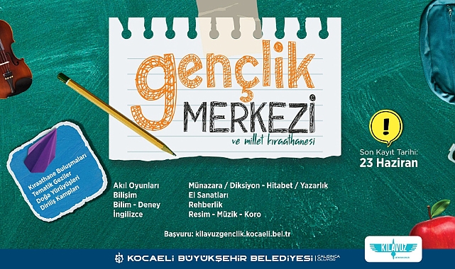 Kocaeli Büyükşehir Belediyesi’nin ödüllü gençlik projesi ‘Kılavuz Gençlik’ kapsamında hizmet veren Gençlik Merkezi ve Millet Kıraathanesi’nin yaz dönemi kayıtları başladı. 11-25 yaş arası gençlerin faydalanabildiği yaz döneminde atölye ve etkinliklerde gençler hem öğrenecek hem de eğlenecek. Kocaelili gençlerin bu merkezler sayesinde çok daha başarılı ve özgüvenli bireyler olduklarını söyleyen Kocaeli Büyükşehir Belediye Başkanı Tahir Büyükakın, tüm Kocaelili gençleri Gençlik Merkezlerinden ve Millet Kıraathanelerinden faydalanmaya çağırdı.