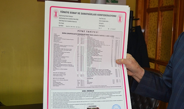 Ticaret Bakanlığı tarafından tüketicilerden gelen şikayetler doğrultusunda Fiyat Etiketi Yönetmeliği'nde değişikliğe gidildi.Söz konusu değişiklik kapsamında, tarife ve fiyat listelerine ilişkin belgeler lokanta, restoran, kafe, pastane ve benzeri yiyecek ve içecek hizmeti sunulan iş yerlerinde giriş kapısının önüne ve hizmet sunulan masaların üstüne, tüketiciler tarafından kolaylıkla görülebilir ve okunabilir şekilde konulacak. Uygulama 1 Ocak 2024’te başlıyor.Bursa Lokantacılar Kebapçılar, Köfteciler ve Benzerleri Esnaf Odası Başkanı Arif Tak, 1 Ocak 2024'te yürürlüğe girecek karardan memnun olduklarını belirterek İLKHA muhabirine konuştu."Esnafımız çok dengeli bir şekilde fiyat uyguluyorlardı"