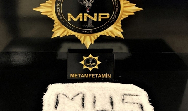 Muş'ta polis ekipleri durdurdukları yolcu otobüsünde, bacaklarına ve beline sarılı halde 1 kilo 69 gram metamfetamin ile yakaladıkları şahsı gözaltına aldı.